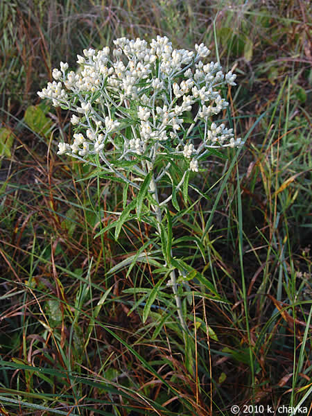 Sweet Everlasting is also know as Rabbit Tobacco and False Cudweed and is in the Aster family. It can grow up to three feet high and two feet wide. Its small white flowers bloom in August and September here in Georgia and reproduces by seeds only. It can take over eight hours of direct sunlight a day and likes well drained to dry soils. For this reason this plant is often found in the edges of meadows or along tree lines in the sun. As Sweet Everlasting nears its maturity the upper stalks and leaves change from green to pale gray.
